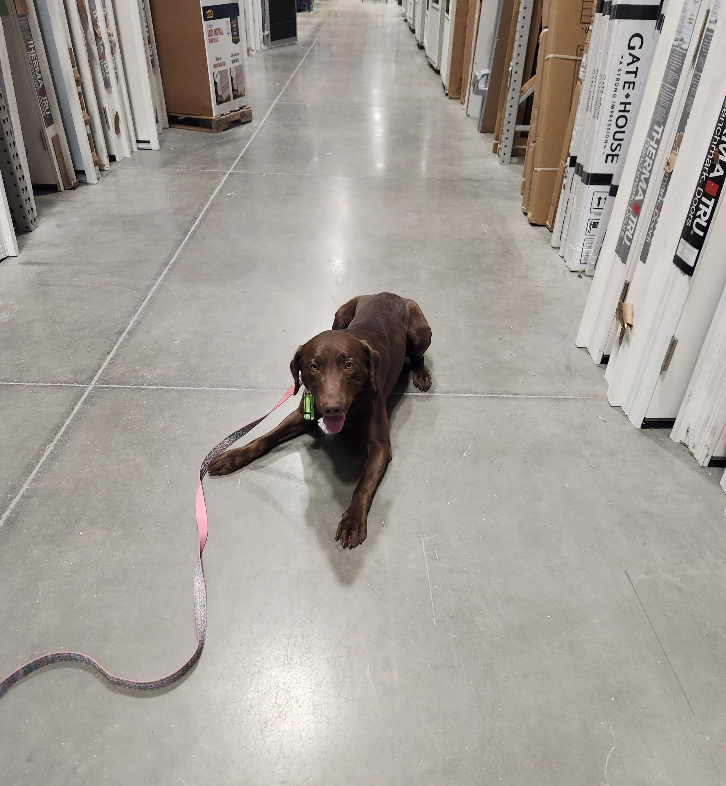 This is Luca, a 1.5-year-old Chocolate Lab. Luca was with me for a 2-week board and train. Luca came to me with little to no boundaries or discipline. He lives on 4 acres of land and didn't like to come when he was called. He also liked to run up to delivery drivers any chance he could, jumping all over them. Over the course of the 2 weeks I've had him we have worked on boundaries and impulse control, as well as general obedience. Luca wants everyone to know how hard he has worked!